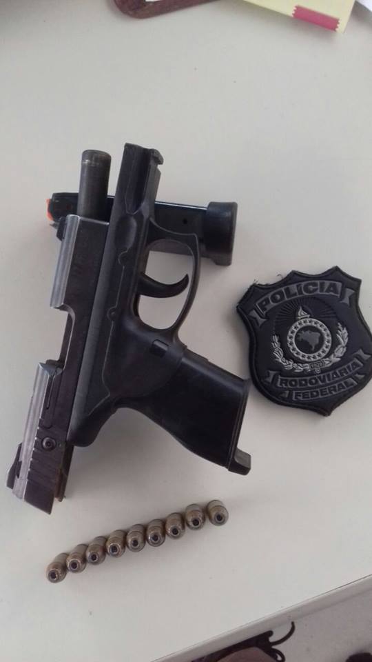 A Polícia Rodoviária Federal apreendeu na tarde de ontem (23) uma pistola calibre .40, arma de uso restrito, durante fiscalização na BR 242. O flagrante ocorreu durante abordagem a um veículo GM/Agile no KM 180 da rodovia, trecho localizado na Chapada Diamantina na Bahia.