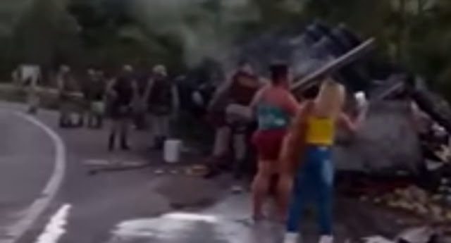 O motorista continuou seguindo viagem, deixando os transautos em pânico e rastos de fogo pela pista queimando a vegetal em volta da rodovia.