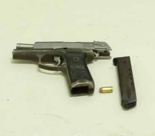 Os investigadores fizeram buscas no veículo e encontraram em um compartimento atrás do porta luvas uma pistola .40 HUGER com carregador e uma munição intacta.