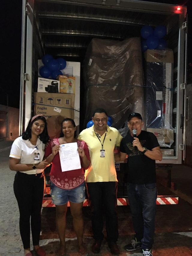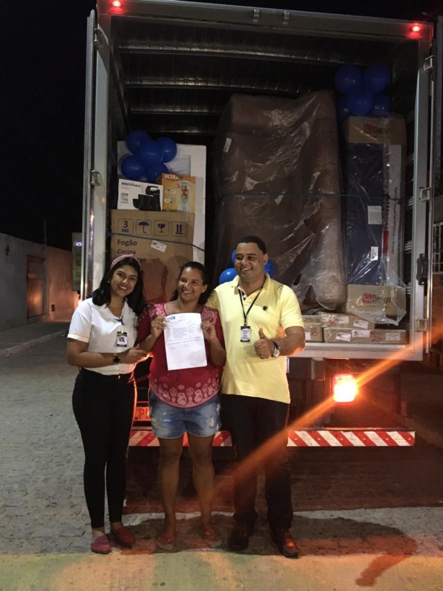 Liliane foi a felizarda no sorteio que ocorreu no ultimo dia 27 de dezembro, na loja localizada na Avenida Ruy Barbosa, 55, no centro da cidade e o caminhão foi entregue com grande festa na noite de hoje na casa da ganhadora, no bairro Brisa da Chapada.