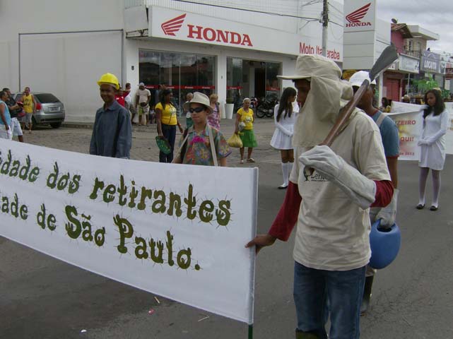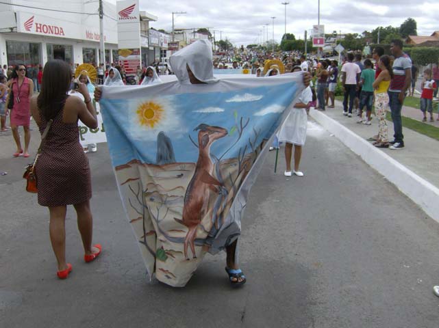 O desfile começou às 9:30h e cantou com a participação de milhares pessoas desfilando e/ou assistindo às apresentações das escolas, militares e o Grito dos Excluídos.