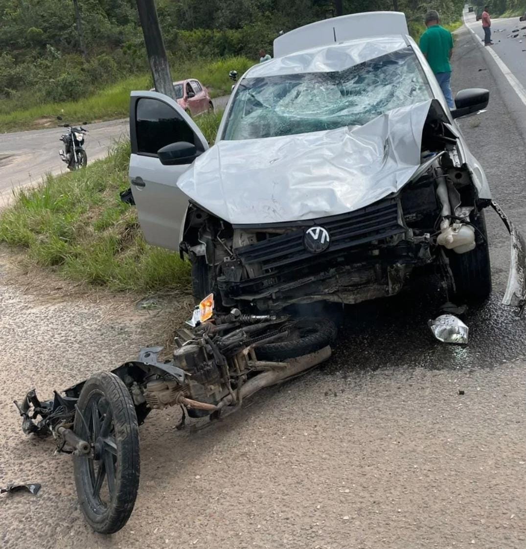 Um acidente gravíssimo foi registrado no trevo de Boa União, sentido Alagoinhas, envolvendo uma moto e um carro, nesta quarta-feira (9).