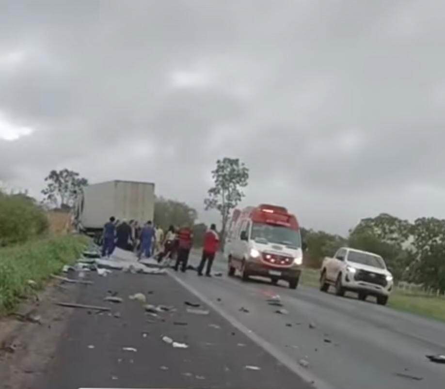 Segundo as primeiras informações repassadas pelo coordenador da Polícia Rodoviária Federal (PRF), o motorista de uma das carretas não conseguiu frear a tempo e acabou invadindo a contramão, colidindo frontalmente com o outro veículo de carga. O impacto foi extremamente violento, deixando um dos condutores em estado crítico.