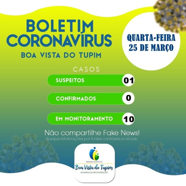 A cidade de Boa vista do Tupim, notificou 1 caso suspeito de coronavirus, e em virtude deste caso outras 10 pessoas foram mantidas em observação por terem contato direto com o paciente.