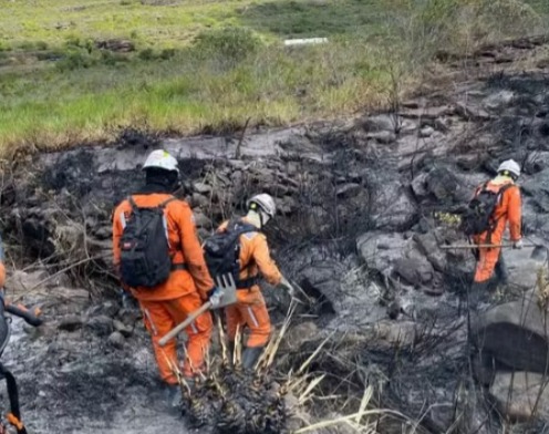 Segundo o Corpo de Bombeiros, os profissionais atuam em pontos isolados que ainda contém matéria orgânica dentro das fendas, que ainda oferecem riscos de possíveis queimas.