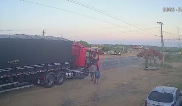 Vídeos que circulam nas redes sociais mostram o momento em que o casal e a criança entram na cabine da carreta no povoado de Belo Horizonte, zona rural de Tucano. Minutos depois, a carreta aparece trafegando em alta velocidade, aparentemente sem controle.