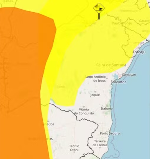 Mais de 100 cidades baianas estão com alerta de vendaval nesta quinta-feira. A maioria dos municípios ficam no norte do estado, como Paulo Afonso, Uauá e Juazeiro. Feira de Santana, a segundo maior cidade da Bahia, também está na lista.