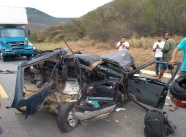 Uma colisão entre um carro e um caminhão deixou dois mortos em um acidente na BR-116 , na tarde desta sexta-feira (16), no trecho entre Manoel Vitorino e Jequié, no Centro Sul Baiano.