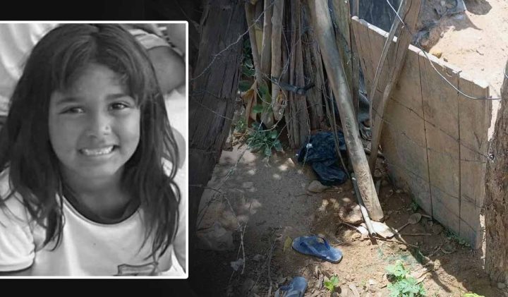 A garota foi encontrada ao chão, sem vida, pelo próprio irmão de sete anos. Ela foi vista com vida momentos antes, quando brincava próximo ao cercado de arame da residência.