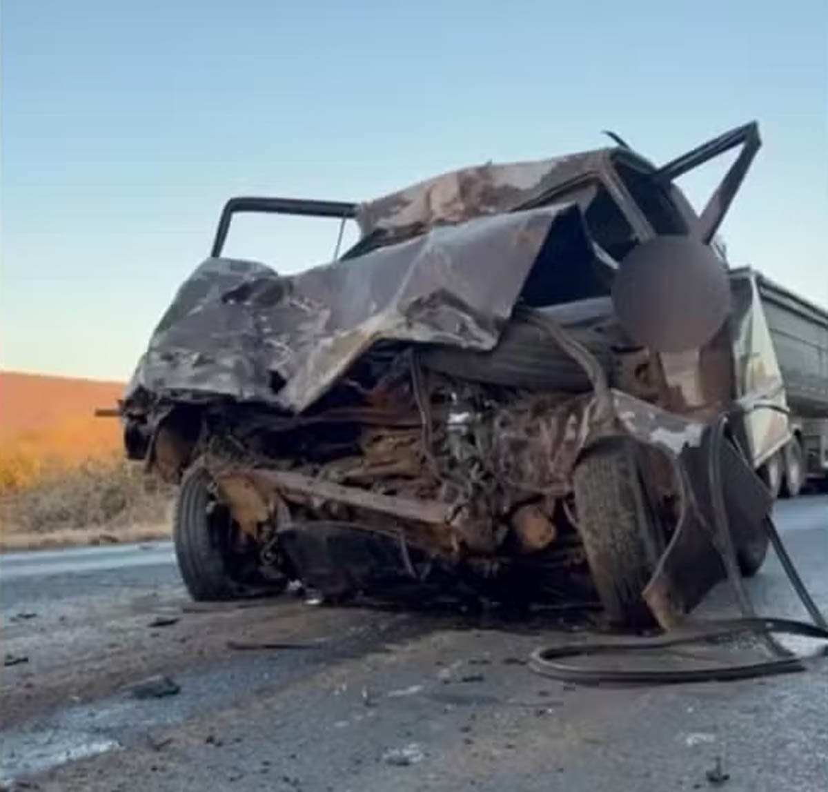 Uma equipe da 28ª Companhia Independente da Polícia Militar (CIPM) foi acionada e isolou a área até a chegada da Polícia Rodoviária Federal (PRF). Por causa do impacto, o carro ficou destruído. Não se sabe se o motorista do caminhão ficou ferido.