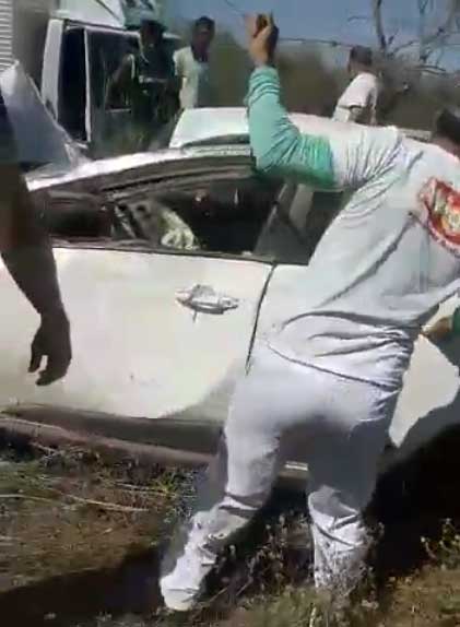 O condutor do carro, que aparentemente, não sofreu graves lesões, ficou preso no veículo mas foi resgatado por populares que pararam no local.
