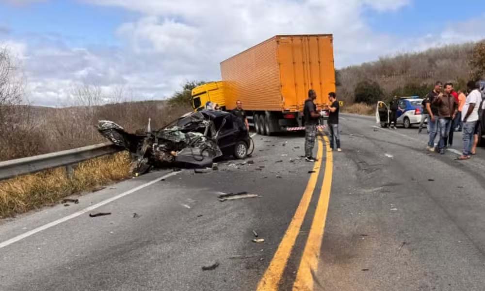 Um homem morreu depois que o carro que dirigia bateu de frente com uma carreta, neste domingo (7), em um trecho da BR-116, na cidade de Nova Itarana, sudoeste da Bahia.