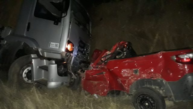 Houve uma colisão frontal envolvendo um caminhão VW/24.250, de cor prata, placa de São José do Jacuípe-BA e um Fiat/Strada Working, de cor vermelha, placa OZK-1494, licença de Ipirá-BA.
