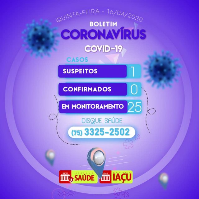 A prefeitura de Iaçu divulgou no inicio da noite desta quinta-feira (16) um novo boletim epidemiológico sobre a evolução da pandemia de coronavirus no município.