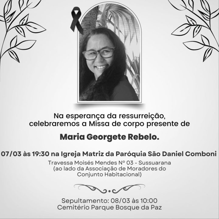 O enterro de Georgete será na sexta-feira (8), às 10h, no Cemitério Bosque da Paz.
