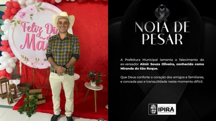 Morre aos 46 anos o ex-vereador de Ipirá, Miranda do São Roque; velório e sepultamento acontecem neste domingo