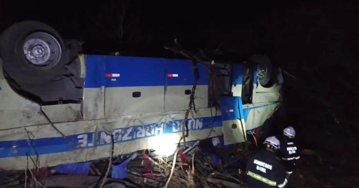 Duas pessoas morreram após um ônibus cair em uma ribanceira em um trecho da BR-030 de Guanambi, no Sertão Produtivo, Sudoeste baiano, na noite deste domingo (15). O acidente ocorreu no trecho conhecido como Serra dos Brindes, “Curva da Morte”, por volta das 21h20.