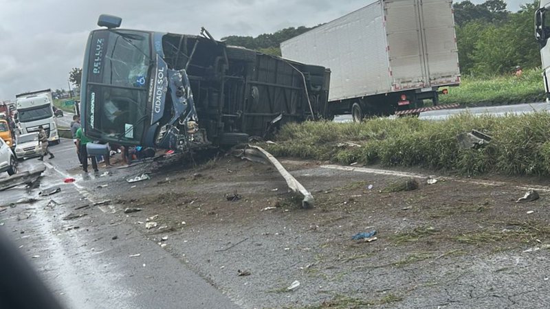 Imagens registradas no local mostram o ônibus tombado e bastante danificado, com destroços espalhados pela pista. Até o momento, não há confirmação oficial sobre o número de feridos ou a gravidade das vítimas.