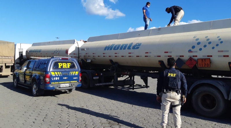 A Polícia Rodoviária Federal (PRF) apreendeu uma carreta que transportava 44.000 litros de álcool hidratado com nota fiscal fraudada. A abordagem aconteceu na altura do quilômetro 270 da BR 242, em Boa Vista do Tupim (BA), na manhã de domingo (16).