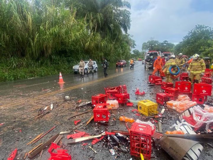 Em virtude do acidente, diversos engradados de bebidas ficaram espalhados pela rodovia. Segundo a Polícia Rodoviária Federal (PRF), o acidente aconteceu por volta das 11h40.