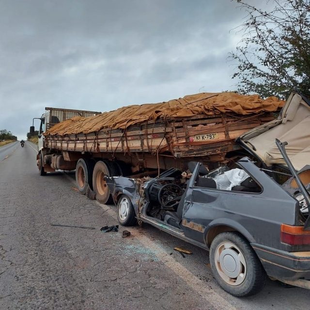 Uma pessoa morreu e outras duas ficaram gravemente feridas em um acidente ocorrido na madrugada desta terça-feira (24) na BR-242, envolvendo om carro e um caminhão.