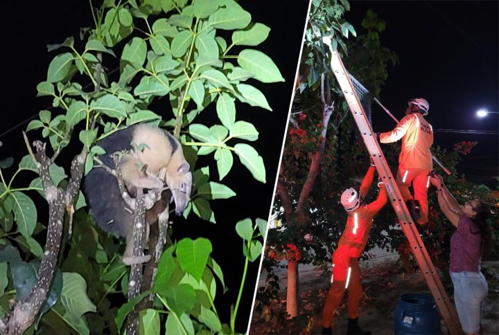 O Corpo de Bombeiros realizou o resgate de um tamanduá-mirim encontrado no centro de Boa Vista do Tupim, município situado a 50 km de Itaberaba, na Chapada Diamantina.