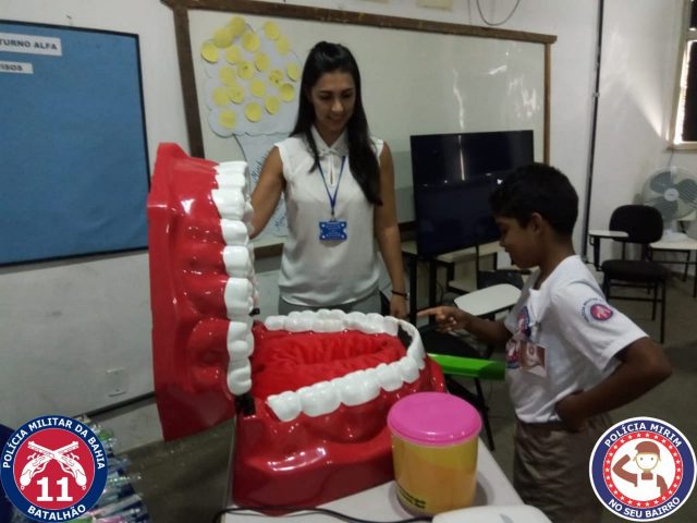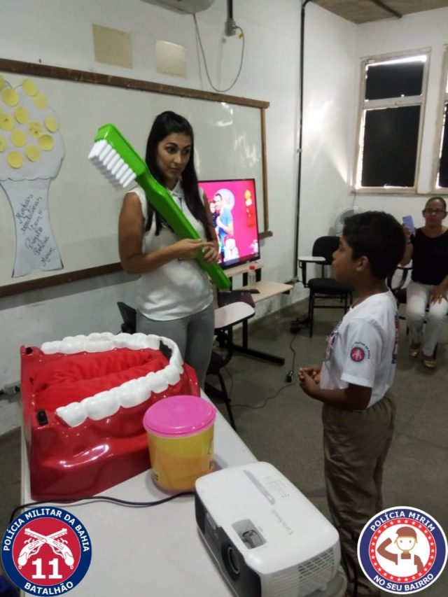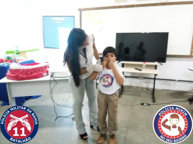 Nesta terça-feira (12) foi realizada mais uma aula do Projeto Polícia Mirim, desta vez os pequenos participaram de um momento de aprendizado interativo com a Dentista Débora Reis que realizou uma palestra divertida e participativa sobre higiene bucal.