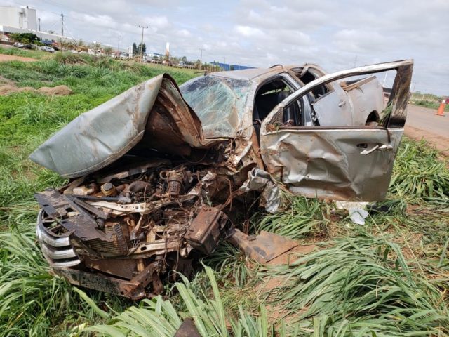 Dois homens ficaram feridos após uma batida entre um carro e uma caminhonete, na manhã desta quarta-feira (27), na BR-242, em trecho da cidade de Luís Eduardo Magalhães, no oeste da Bahia.