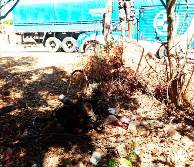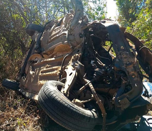 O impacto da batida foi tão forte que o carro ficou completamente destruído. Parte do teto se soltou e até o motor do veículo foi lançado a alguns metros do carro.