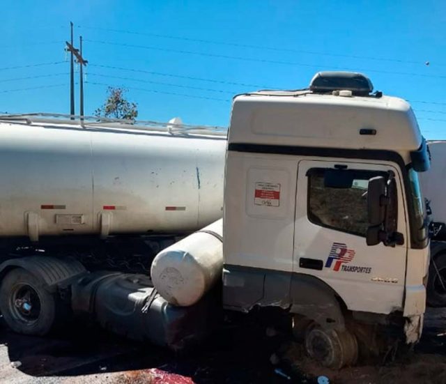BR-242: Mulher morre após carro bater em carreta-tanque que transportava diesel