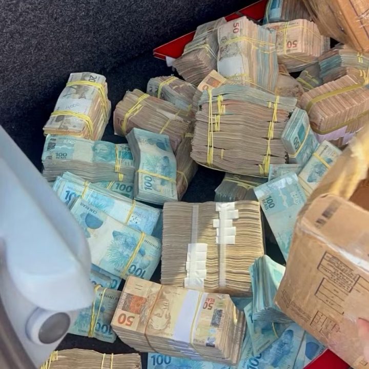 O dinheiro estava em maços com notas de R$ 50, 100 e 200. Em um único bolo, havia mais de R$ 50 mil reais. De acordo com a Polícia Militar, algumas notas estavam soltas e espalhadas pelo interior do veículo e, outra parte, estava dentro de malas e caixas.