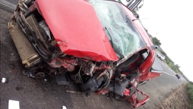 Após a batida, o caminhonete chegou a capotar na pista. O carro de Aníbal ficou destruído.