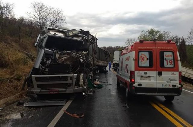 As vítimas foram os motoristas de duas carretas, que trafegavam em sentidos opostos e colidiram em um trecho de curva. As cabines dos veículos ficaram destruídas e os feridos foram socorridos por equipes do Serviço de Atendimento Móvel de Urgência (Samu).