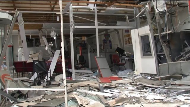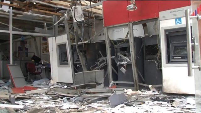 Um outro grupo foi até as agências bancárias, que ficam localizadas a poucos metros uma da outra, na Praça Roberto Cintra. Eles efetuaram cerca de oito explosões, segundo a polícia. As duas agências ficaram destruídas. Não há informações sobre se os criminosos conseguiram levar alguma quantia.