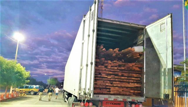 No compartimento de carga, foram encontrados perfis de caibro, viga, vigota e sarrafo, que saíram de Porto Velho (RO) e tinham como destino a cidade alagoana de Arapiraca.