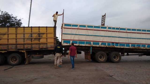 Os agentes federais verificaram que um dos caminhões estava com o motor, ainda, em funcionamento. Já o outro apresentava pane mecânica. Estavam com a carroceria ‘virada’ fundo com fundo e pronto para realizar o transbordo das 18 (dezoito) cabeças de gado.