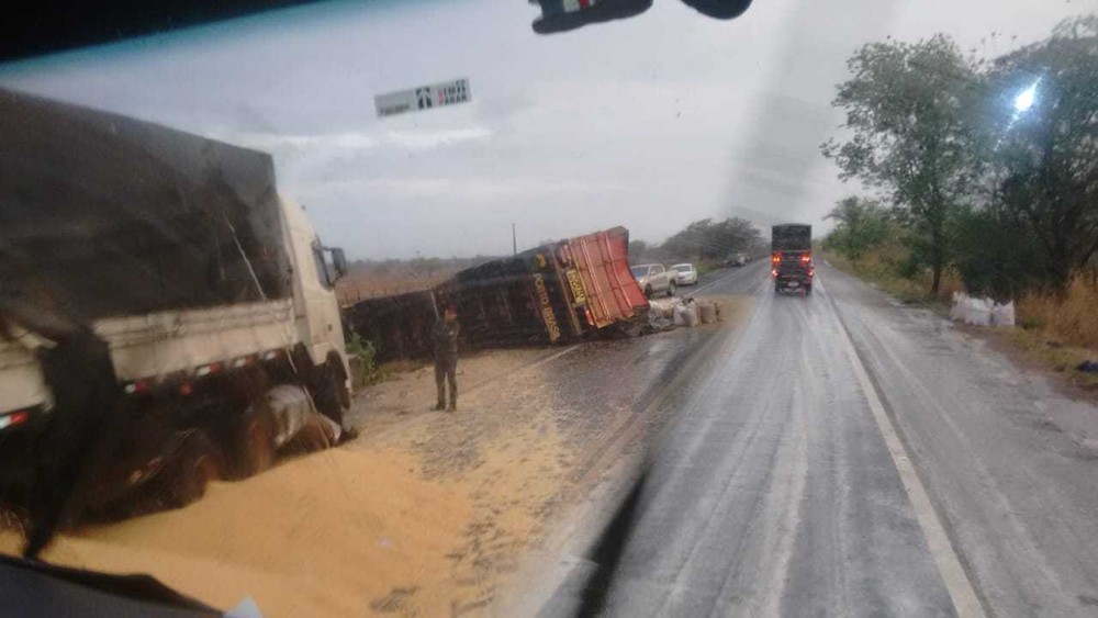 A carga de soja de uma das carretas ficou derramada na pista. Apesar do ocorrido, a rodovia não precisou ser interditada. A PRF de Barreiras, no oeste da Bahia, ajudou no atendimento.