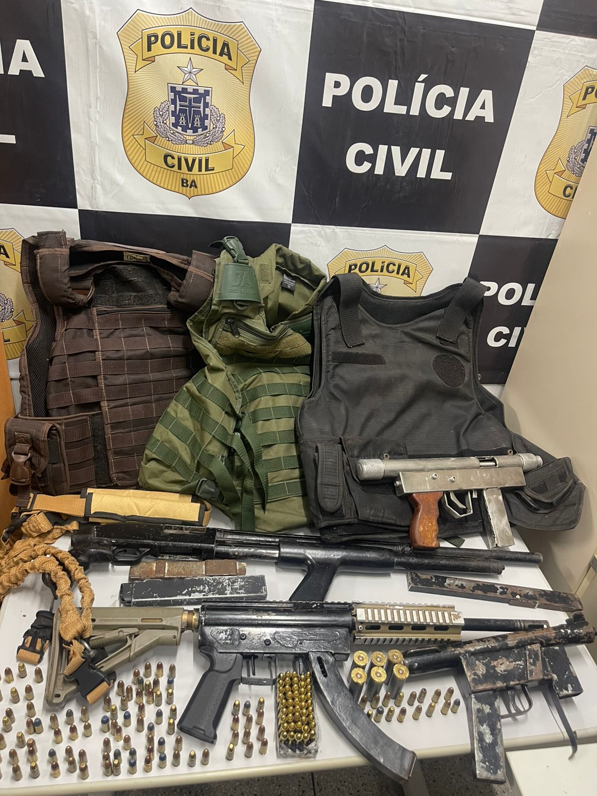Uma ação conjunta entre a Polícia Civil, a Polícia Militar e a CIPE resultou na apreensão de quatro armas de fogo, três coletes balísticos e uma grande quantidade de munição nesta terça-feira (09/09), em uma área de mata no município de Baixa Grande, Bahia.