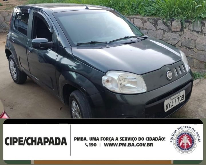 Policiais da Cipe Chapada abordaram um veículo, durante rondas, no centro de Itaberaba.