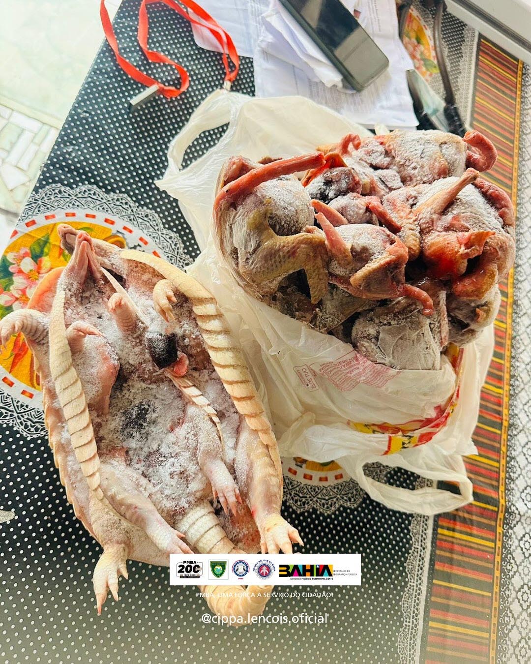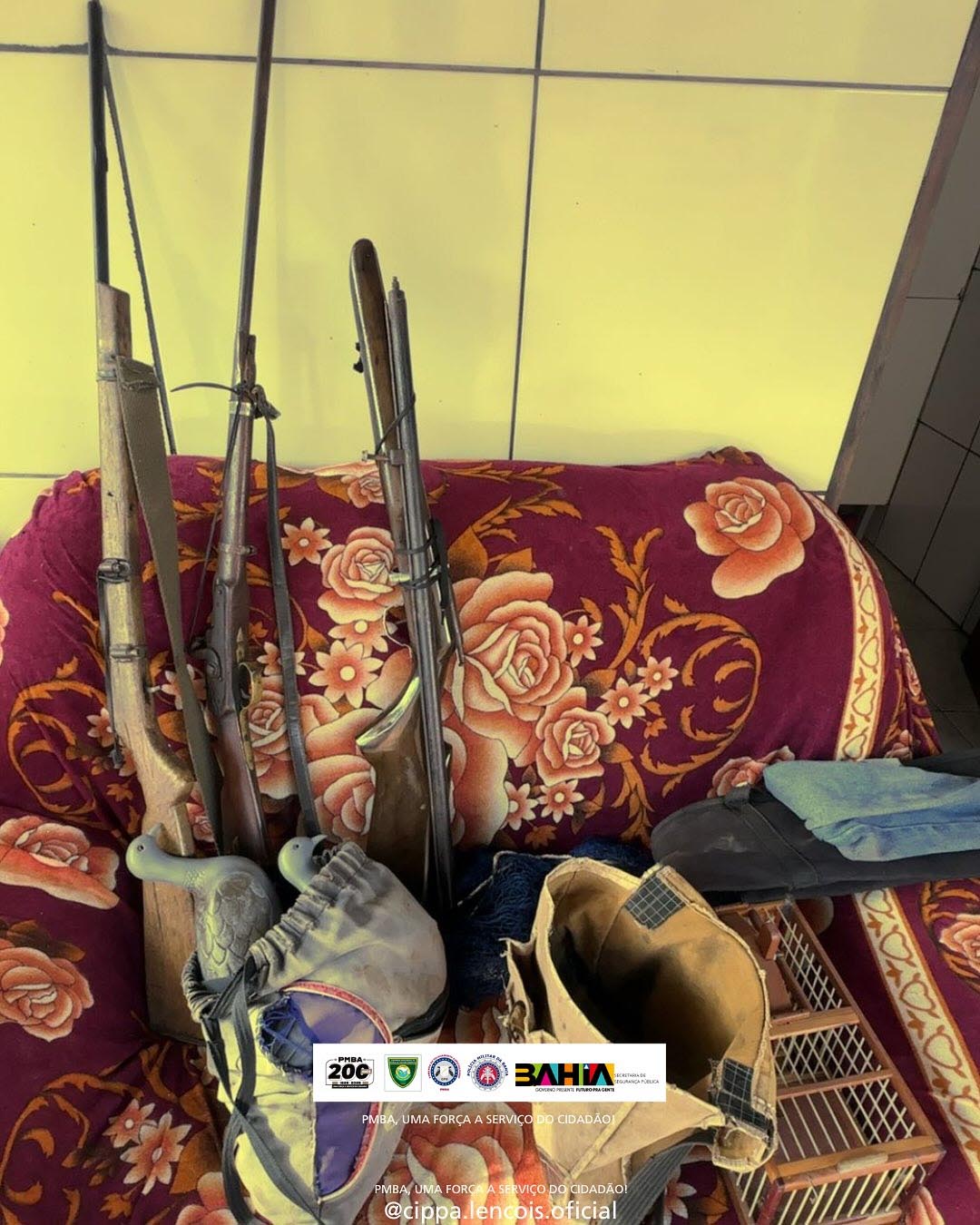 A CIPPA Lençóis apreendeu armas, animais abatidos e aves silvestres mantidas de forma irregular durante uma ação no distrito de Cascavel, em Ibicoara.