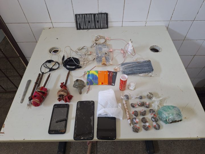 Durante uma revista na carceragem da Delegacia de Itaberaba, realizada por Policiais Civis da unidade e da 12ª Coorpin, foram encontrados diversos objetos perfurocortantes, celulares, carregadores e porções de maconha.