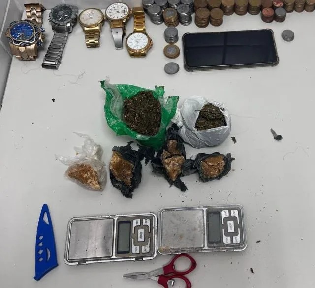 Na kitnet do primeiro andar, encontraram uma mulher que correspondia às características informadas na denúncia. Durante a abordagem, os policiais identificaram drogas armazenadas no local. A suspeita confessou que realizaria a venda dos entorpecentes na região, principalmente na área da rodoviária.