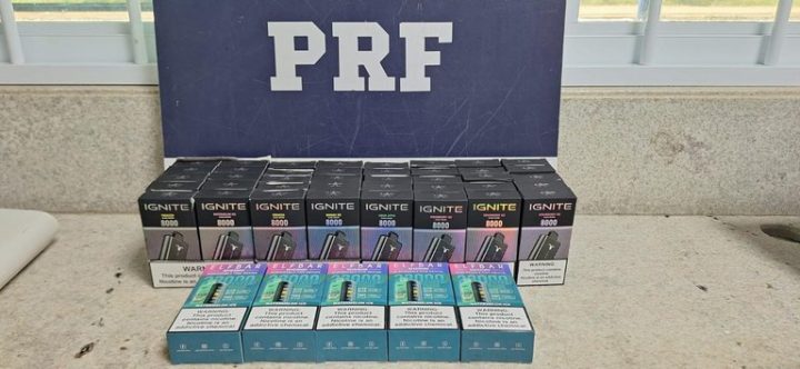 Além disso, foram apreendidos 45 cigarros eletrônicos, material de comercialização, importação e propaganda proibidas no Brasil devido aos risco à saúde pública. A carga transportada, caracterizando o crime de contrabando, foi apreendida e a ocorrência foi encaminhada à Receita Federal.