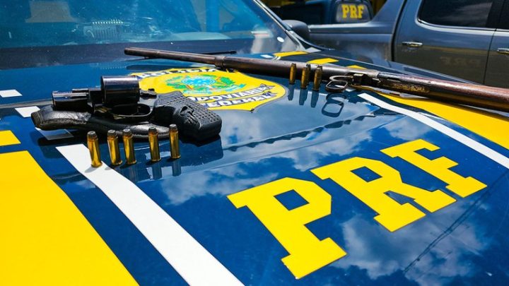Dois homens foram presos pela Polícia Rodoviária Federal (PRF) em Simões Filho, Bahia, por porte ilegal de armas.