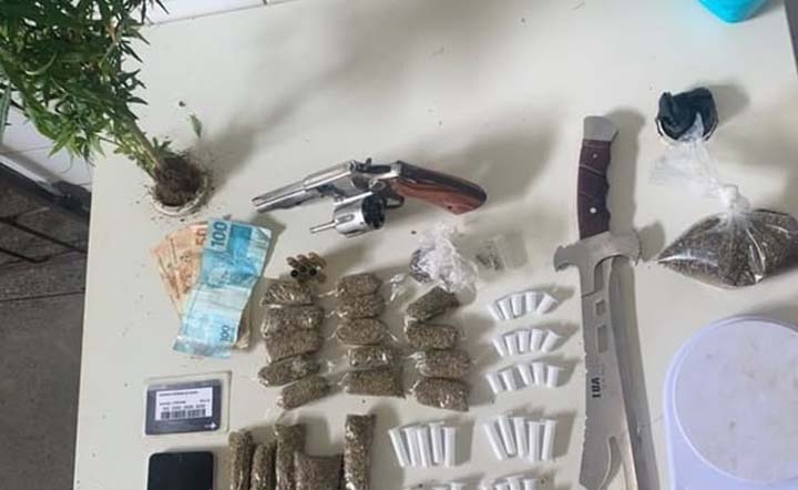 No local, a PM apreendeu ainda: outro revólver calibre .38 com três munições, 5 papelotes grandes e 15 médios com substância análoga à maconha, 46 pinos de cocaína, dois pés de maconha, um facão tipo espada e R$ 250 em dinheiro. Todo o material foi encaminhado à Delegacia de Polícia Civil para os procedimentos legais.