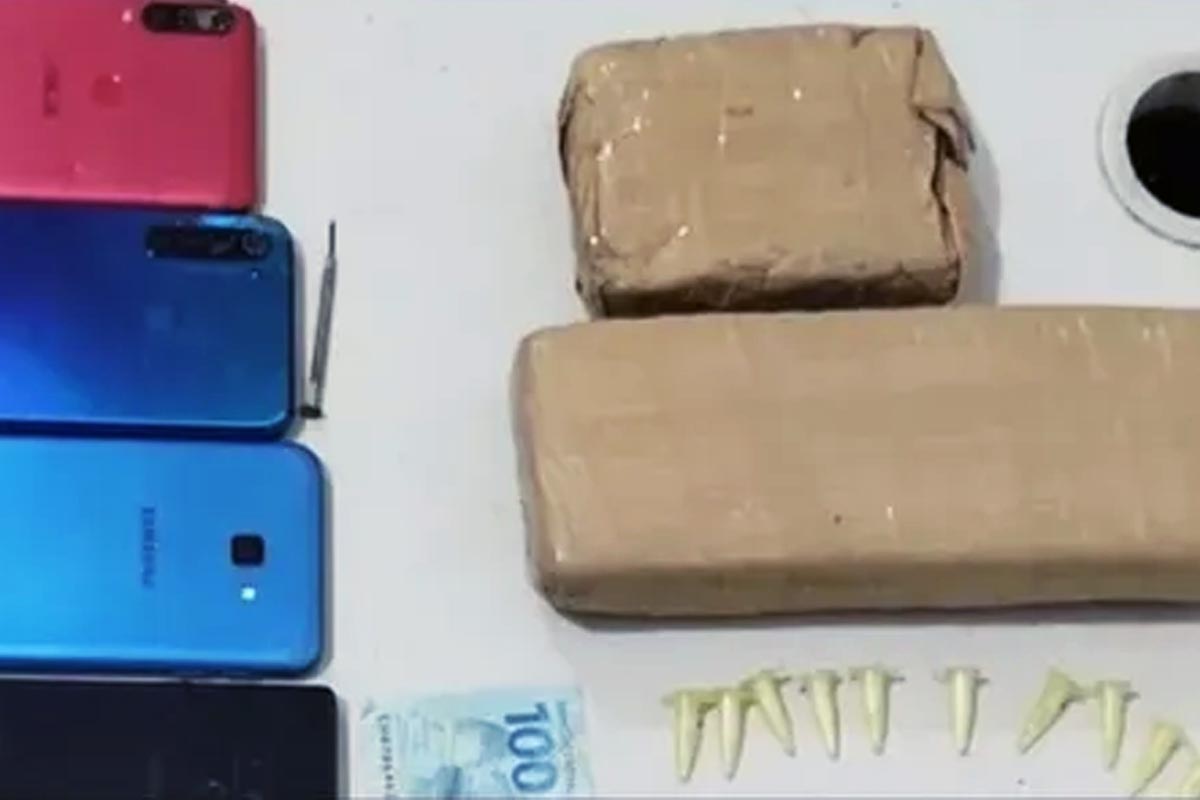 As equipes deslocaram-se até o local e, ao proceder com abordagens, encontraram um revólver calibre 32 carregado, dois tabletes de maconha, 11 pinos de cocaína, além de seis celulares de diferentes marcas e uma quantia em dinheiro. Diante dos fatos, três indivíduos foram detidos e receberam voz de prisão no local.
