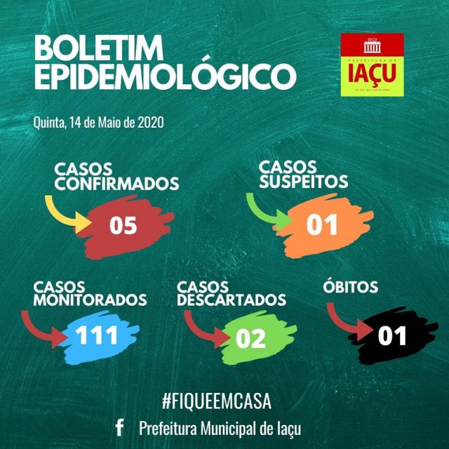 A cidade confirmou 5 casos positivos de Covid-19, tem 1 caso suspeito, ja descartou 2 e ainda tem 111 pessoas em monitoramento