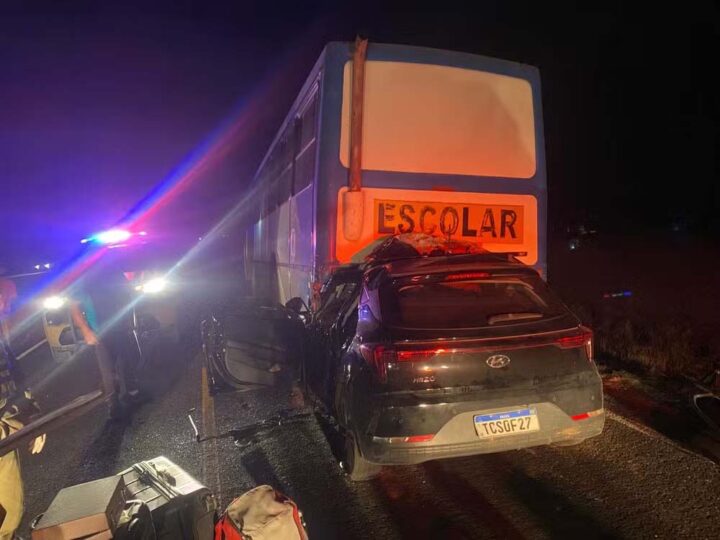 Segundo informações da Polícia Rodoviária Federal (PRF), o acidente aconteceu por volta das 20h, no KM 1.100. Os veículos seguiam no mesmo sentido quando o carro bateu na traseira do ônibus.