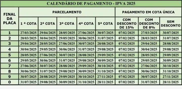 Os pagamentos podem ser realizados à vista em qualquer banco ou via Pix. Além disso, o processo de licenciamento integrado, incluindo o IPVA, pode ser feito de forma totalmente digital na plataforma do governo.