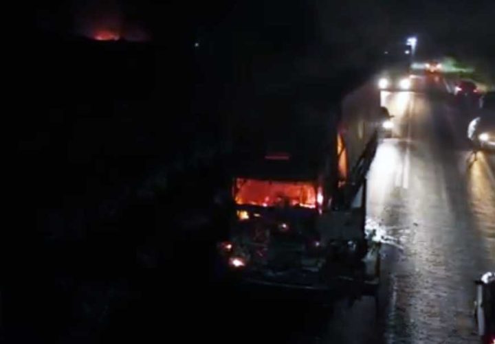Segundo informações, o motorista foi surpreendido pelas chamas que começaram na cabine do veículo. Felizmente, ele conseguiu sair a tempo e não sofreu ferimentos.